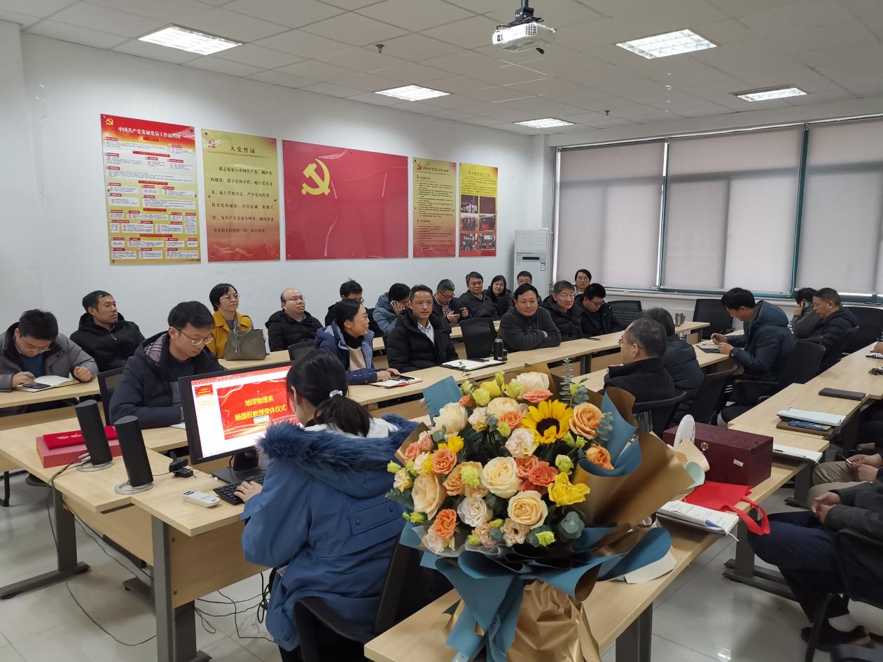 院长刘华回顾了杨国权老师在学院的工作经历,对杨国权老师表示祝贺,感谢他在教学科研方面做出的贡献,并祝愿杨老师的退休生活丰富多彩,希望杨老师继续关注地球科学与技术学院这一大家庭的发展。