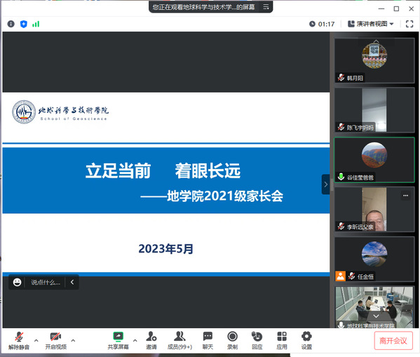 为进一步加强家校联系,发挥家校育人合力,助力学生更好成长。5月11日,学院2021级召开“立足当前,着眼长远”线上家长会。辅导员栗磊、任金恒、张文倩和2021级全体学生家长参加会议。
