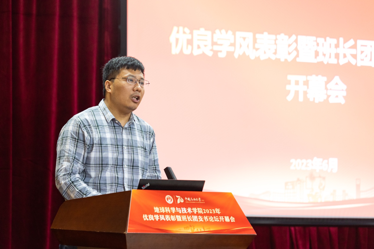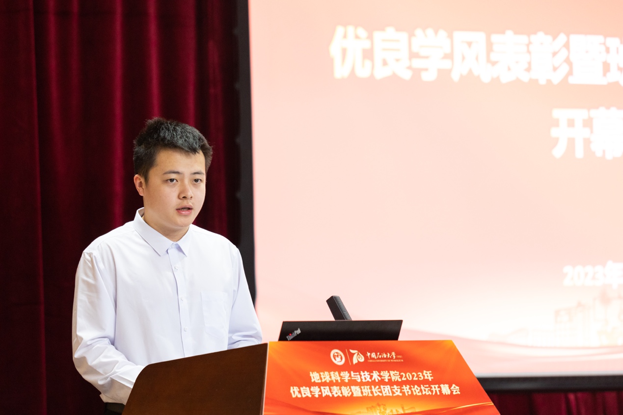 会上,张宪国宣读《地球科学与技术学院优良学风班级、好班长、十佳团支书表彰文件》。他表示,希望受表彰的班集体和同学们,继承和发扬勘探人的优良传统,戒骄戒躁、再接再厉,在今后的学习中不断取得新的成绩。