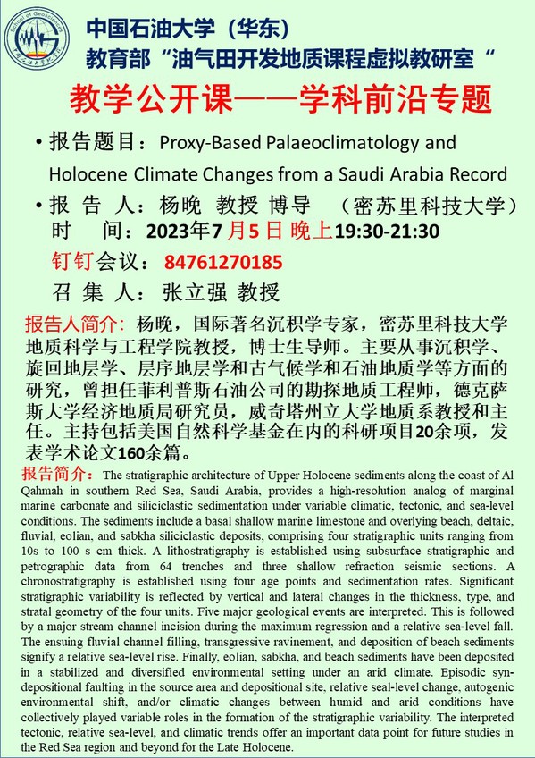 【预通知】教育部“油气田开发地质课程虚拟教研室”教学公开课——学科前沿专题