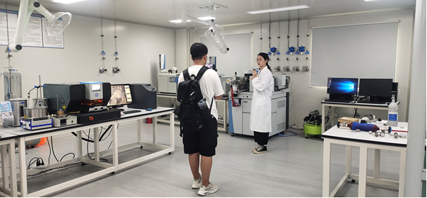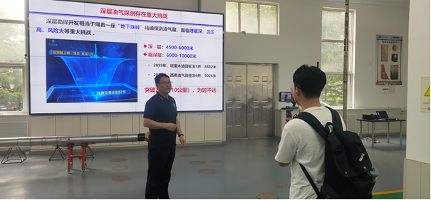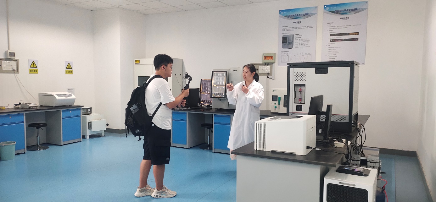 “地学之旅”下午2:30开始,参营学生在主持人黄睿的带领下依次参观了学院文化建设、专业实验室及科研平台。在“辉煌时刻”面板前,黄睿向学生介绍了学院的诸多“第一个”:第一个国家特色专业、第一位国家模范教师……通过学院文化建设参观,营员深入了解了学院的雄厚师资力量、一流学科实力和全面人才培养等方面取得的丰硕成果。接着,营员们参观了有机地球化学实验室、油气同位素实验室、高温高压驱替核磁共振实验室等重点实验室。营员们对学院高端、先进的实验设备和自主创新的科研平台表现出了极大的兴趣。实验室老师和优秀研究生讲解员饱满的科研热情和娴熟的仪器操作也让营员们进一步了解到学院的综合实力和“勘天下、探未知、当尖兵、兴国家”的价值追求。