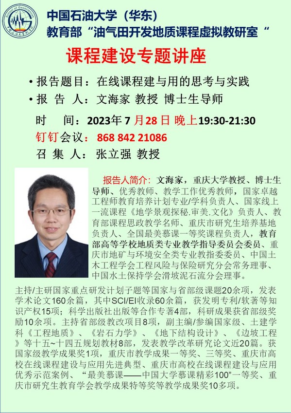 【预通知】教育部“油气田开发地质课程”虚拟教研室活动——课程建设专题讲座