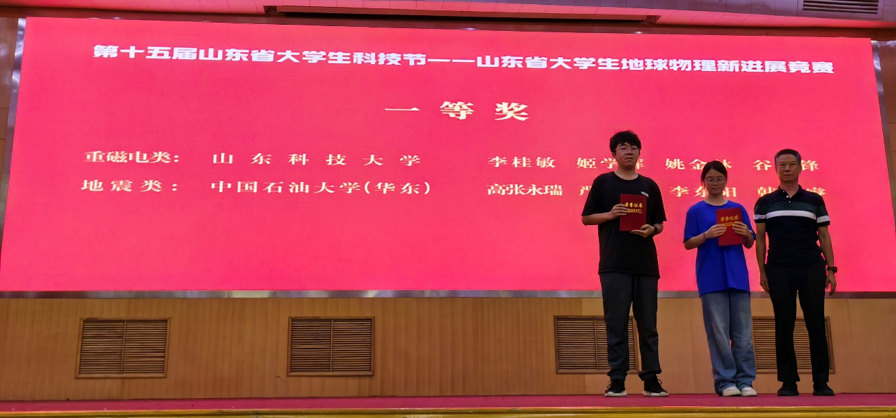 竞赛分视频展示和现场展现、必答题、选答题和综合题等四个环节,经过紧张激烈的角逐,我校参赛队获得一等奖1项(地震组)、二等奖2项(重磁电组和地震组各1项)。