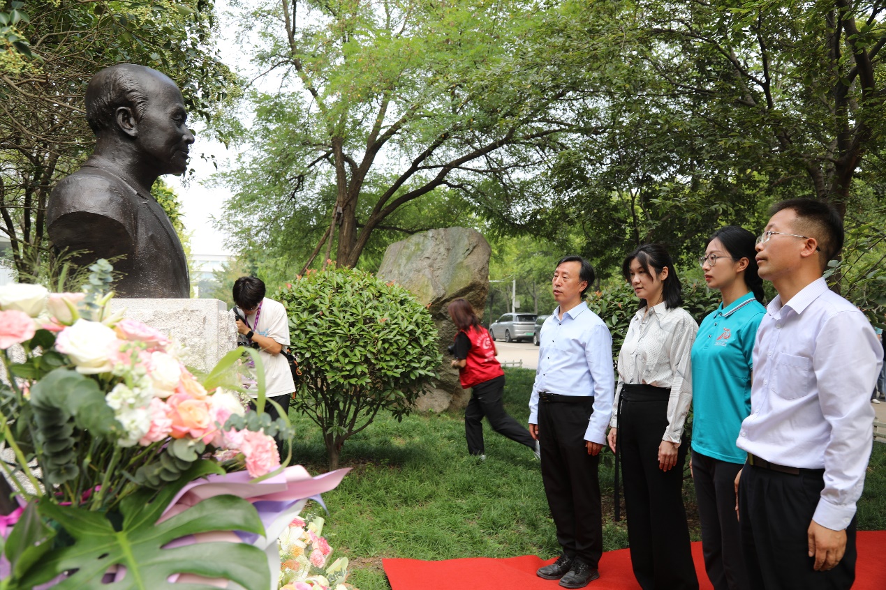 随后,家属代表、师生代表向张庚骥先生塑像敬献花篮。