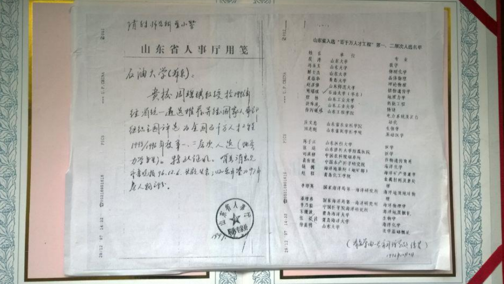1996年,我校油气资源与环境地质研究所所长周瑶琪入选全国“百千万人才工程”第一、二层次人选(地质力学专业),这是我校首位入选国家级人才工程的教师。