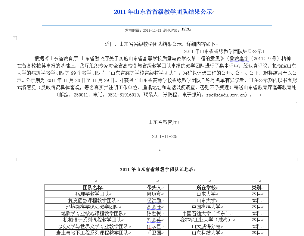 109 第一次入选山东省“高校网络教育名师培育支持计划”