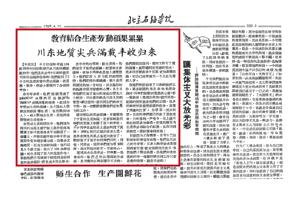 1958年8月起,北京石油学院石油地质系师生参加了川中和川东石油会战。