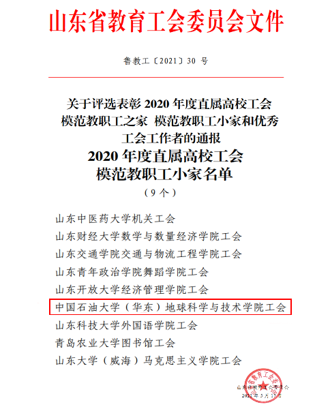 2021年6月,山东省教育工会委员会发文《关于评选表彰 2020 年度直属高校工会模范教职工之家 模范教职工小家和优秀工会工作者的通报》(鲁教工〔2021〕30 号),冰球官网工会获模范教职工小家称号,全省共9个。