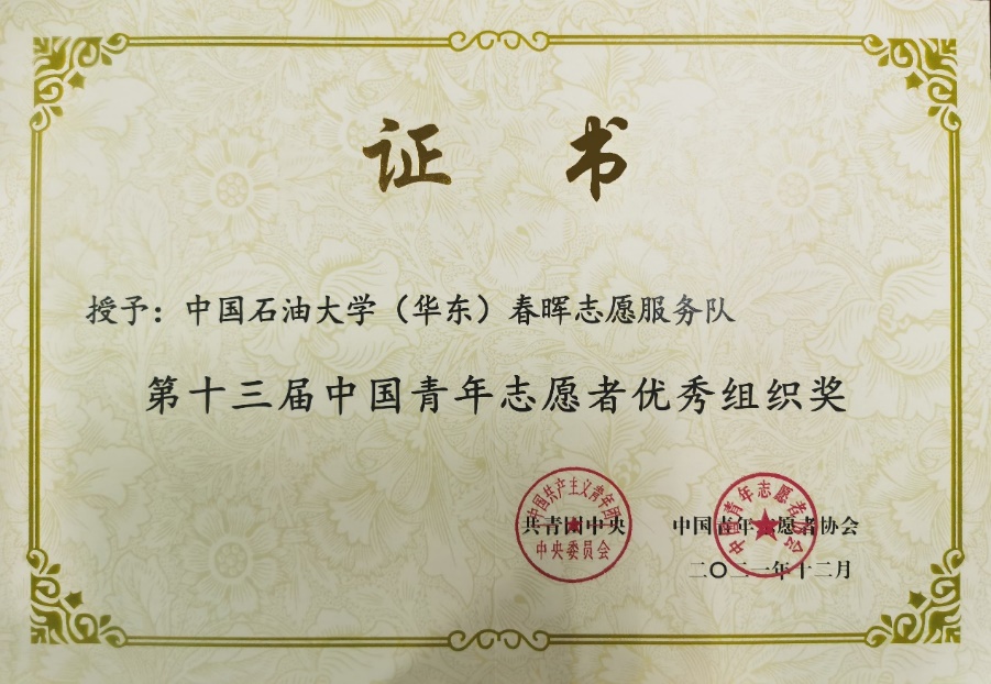 2021年12月,冰球官网春晖志愿服务队等100个组织荣获第十三届“中国青年志愿者优秀组织奖”。