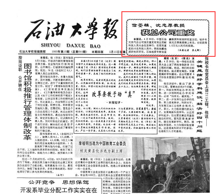 1993年4月,中国石油天然气总公司首次重奖有突出贡献科技人员大会在京举行,冰球官网油藏地质研究所所长、石油地质专家信荃麟教授榜上有名,获得1.5万元人民币的奖励。