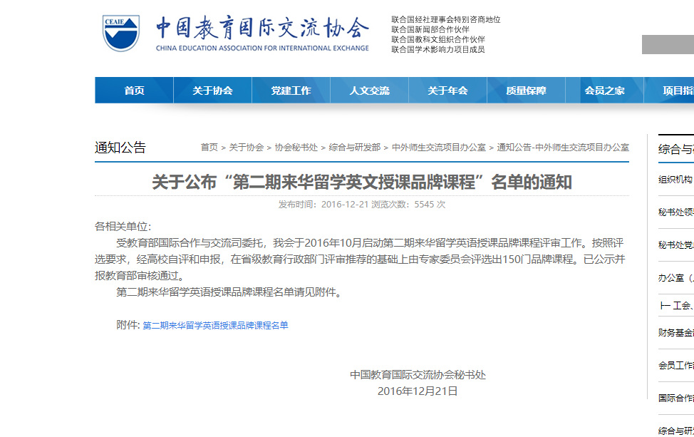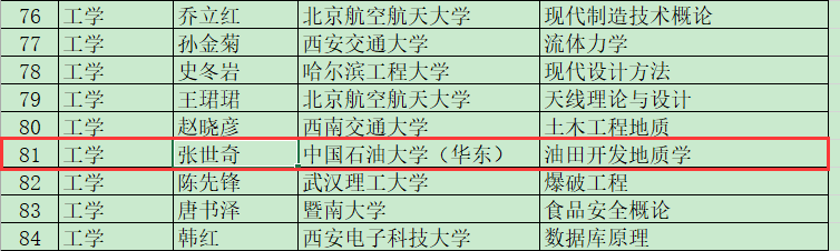 2016年12月,教育部公布第二期来华留学英文授课品牌课程评选结果。冰球官网张世奇教授主持申报的“油田开发地质学”课程入选。