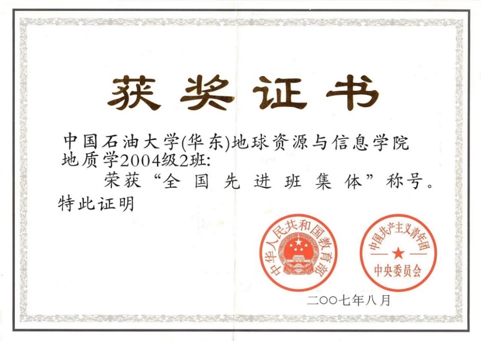 2007年8月,冰球官网地质学2004级2班被教育部、团中央授予“全国先进班集体”称号。