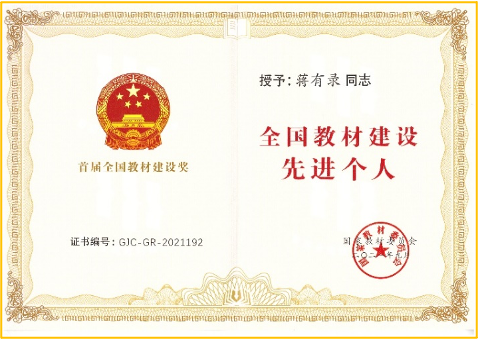 2021年10月,教育部公布首届全国教材建设奖获奖名单,冰球官网蒋有录教授获“全国教材建设先进个人”称号。