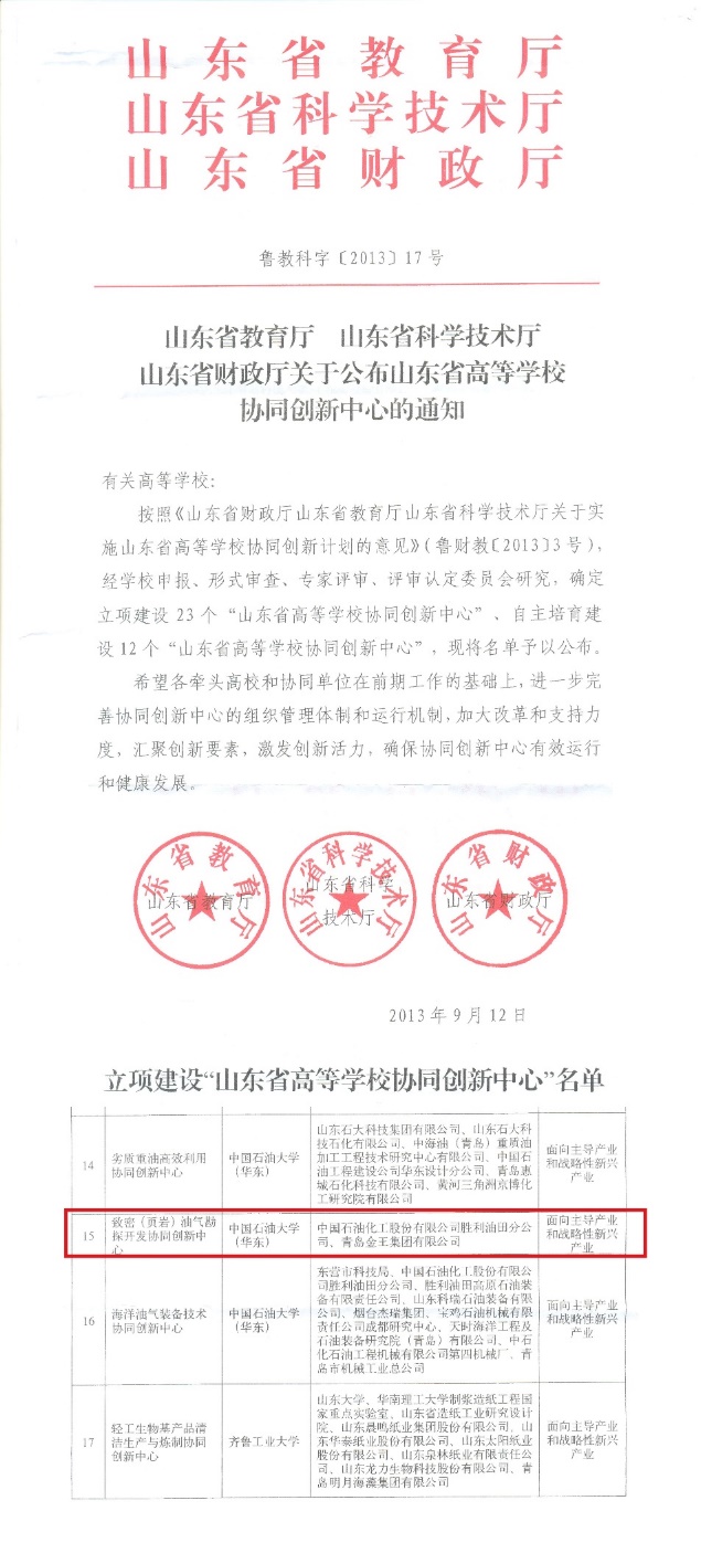 2008年2月,山东省委、省政府授予油气地质与勘探创新团队“山东省优秀创新团队”荣誉称号,并记集体一等功。这是我校第一个省级“优秀创新团队”。