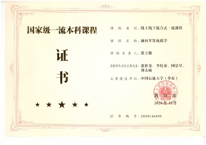 2021年6月,冰球官网张立强、张世奇、国景星、李红南、刘太勋、宋璠、张宪国、赵建华负责的《油田开发地质学》入选国家课程思政普通本科教育示范课程,授课教师入选国家课程思政教学名师和教学团队。