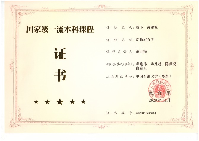 2020年11月,教育部公布首批国家级一流本科课程名单,冰球官网地震勘探原理、矿物岩石学、油气地质与勘探、油田开发地质学等4门课程入选。