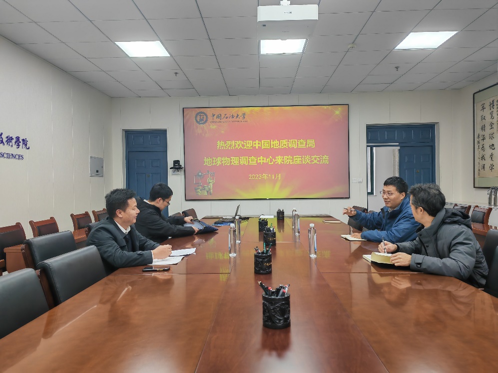 会议伊始,张宪国对中国地质调查局地球物理调查中心一行来访表示欢迎并介绍了学院基本情况。曹丹平详细介绍了地球物理系基本情况、师资情况、科研成果,表示地球物理调查中心业务范围与学院学科布局高度匹配,希望双方加强交流,实现校企互惠共赢。