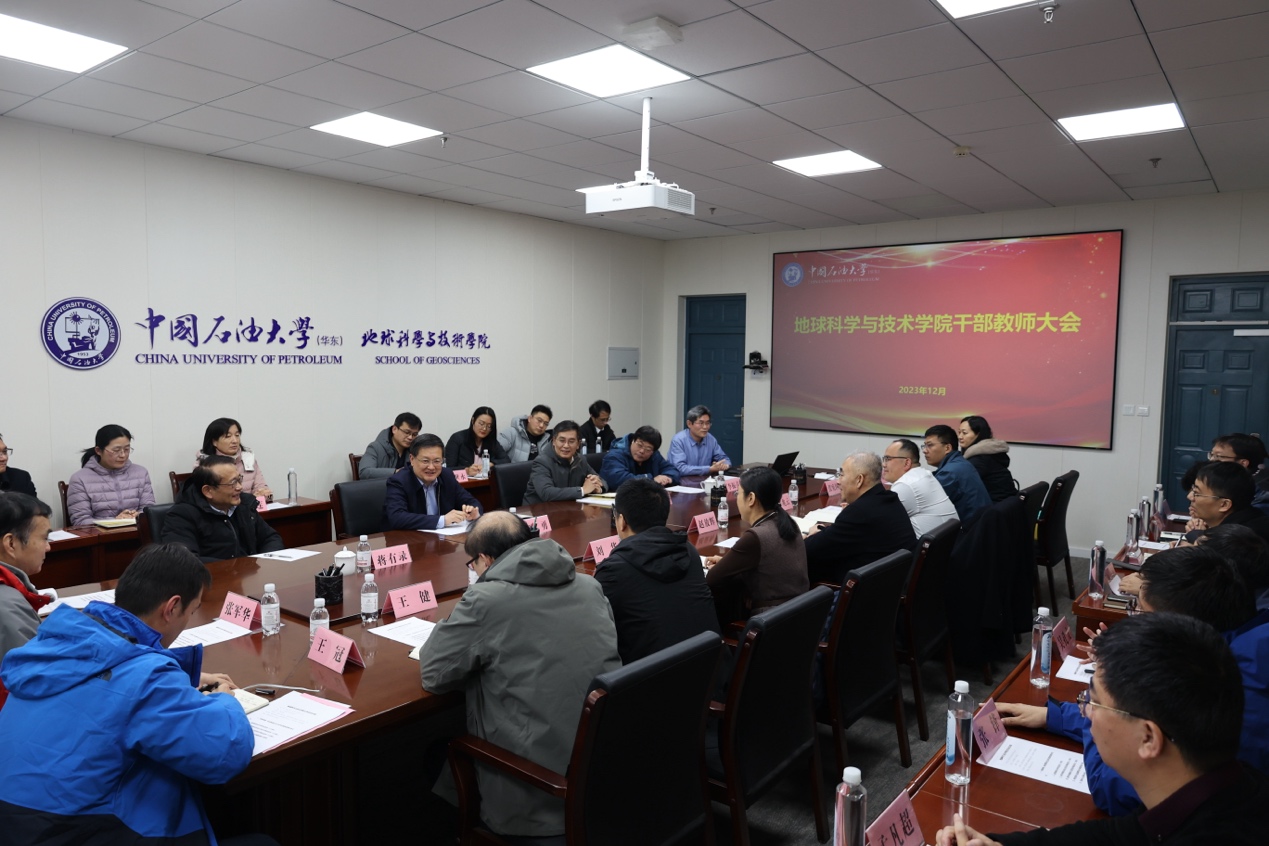 12月26日下午,学校在工科楼C251会议室召开地球科学与技术学院干部教师大会。学校党委书记王勇,党委常委、组织部部长张卫东出席会议,学院领导班子成员,各系主任、党支部书记,教授委员会主任,工会主席,教职工代表,办公室人员等参加会议。会议由张卫东主持。