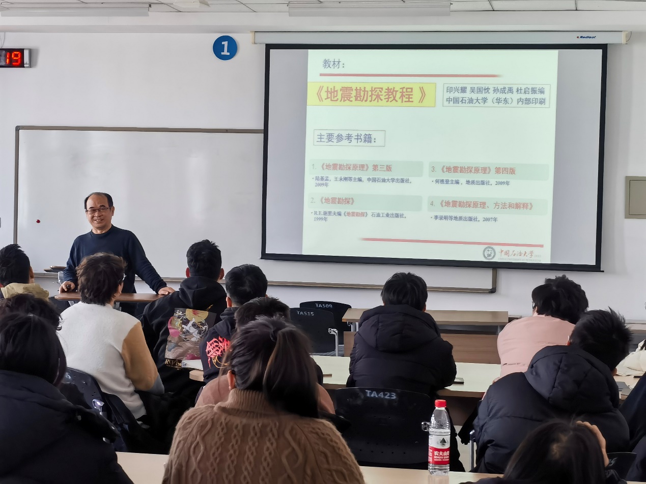 开学第一天,学院有近40门课程开课。全国优秀教师、全国高校黄大年式教师团队负责人印兴耀教授为本科生讲授专业核心课程《地震勘探原理》,讲台上干货满满,讲台下收获多多,师生共同叩响“真理门”。