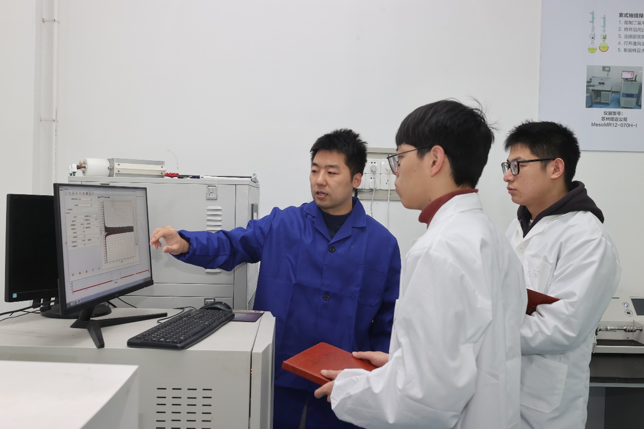在深层油气重点实验室高温高压核磁共振驱替实验室,王齐鸣老师在指导研究生做实验。学院师生寒假科研不断线,开学继续潜心学术探索前沿,一起抒写奋进“科研路”。