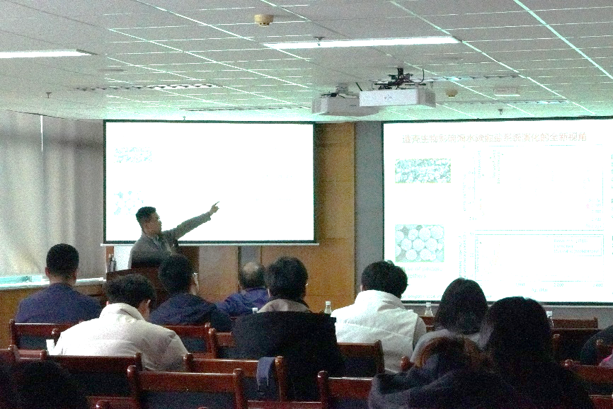 报告会上,王久源博士首先介绍了地质历史时期碳酸盐岩工厂的研究手段,并由此引出一种全新的碳酸盐岩饱和度指标:锶稳定同位素(δ88/86Sr)。继而从锶同位素动力学分馏理论基础出发,讲解了稳定锶同位素为何能记录沉积速率的变化。并结合自身研究成果,介绍了锶稳定同位素对长期海水碳酸盐系统变化的记录,围绕碳酸盐岩的锶稳定同位素记录、碳酸盐工厂演化的沉积学证据、造壳生物对海水海水碳酸盐系统演化的影响几方面,讲述了30亿年来碳酸盐工厂演化史。交流环节,针对同一时期不同剖面的可对比性、生物对锶同位素分馏的影响、碳酸盐岩结晶方式对锶同位素分馏的影响等多面问题,冰球官网师生与王久源博士展开了热烈讨论。