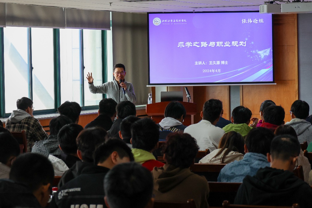 4月13日,学院在工科楼C座757会议室举办经纬论坛,邀请资源专业2012届毕业生、北京大学助理教授、国家级青年人才计划获得者王久源,以“求学之路与职业规划”为主题,为学生分享自身成长经历,传授科研和求职经验。本次论坛由资源系副教授曲江秀主持,学院党委副书记郑珊珊,相关年级班主任、辅导员和学生参与论坛。