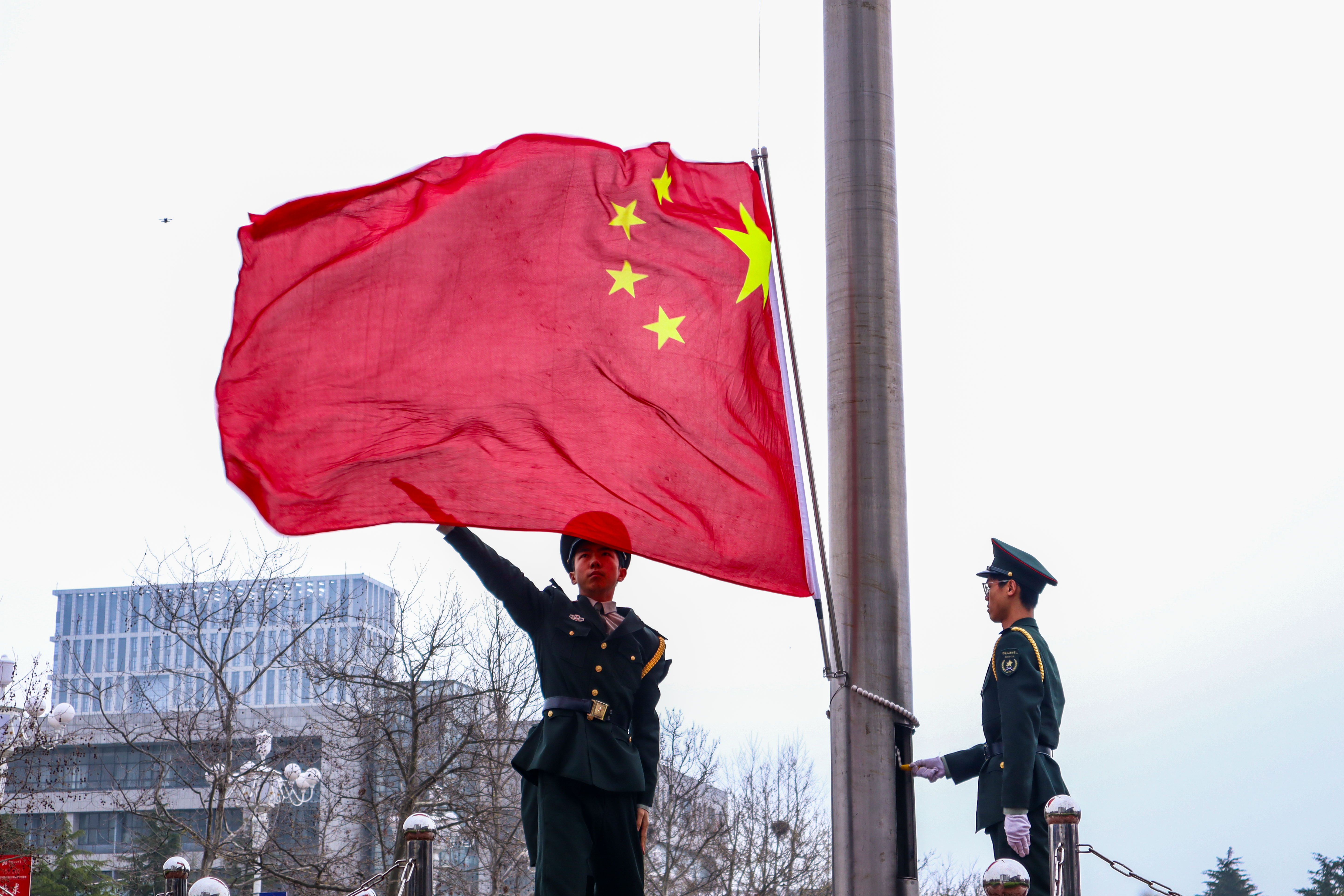 升旗仪式进行中 许含嫣摄