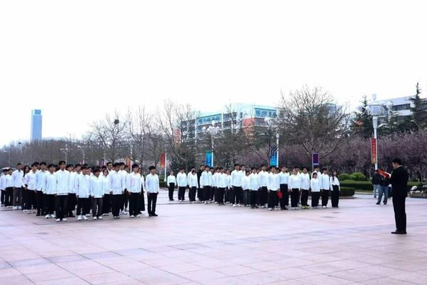 清晨,曙光初照,子元广场庄严肃穆。随着《义勇军进行曲》雄壮激昂的旋律响起,青年师生齐声高唱国歌,鲜艳的五星红旗在晨光中冉冉升起,象征着中华民族的伟大复兴与繁荣富强。