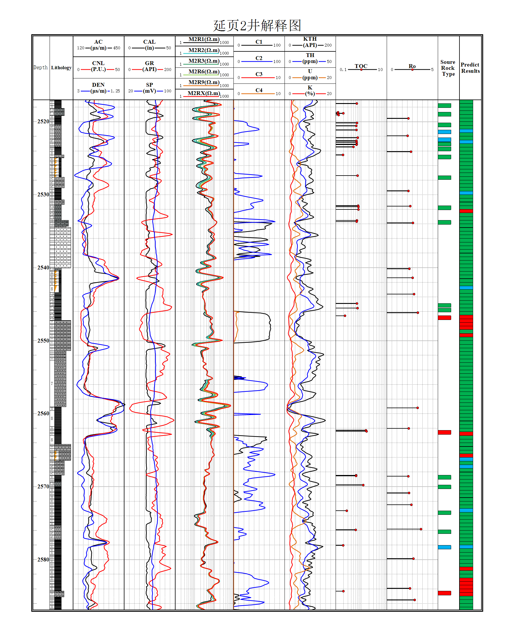 油气资源评价中,干酪根类型等烃源岩特性至关重要。然而,由于地层各向异性显著以及地球物理测井数据与实验室地球化学观测值之间的相关性差,确定干酪根类型具有极大挑战性。本文综合地质条件、测井数据和地球化学数据,提出了一种利用遗传算法驱动的支持向量机(GA-SVM)进行干酪根类型识别算法。该方法的主要包括两部分,首先使用支持向量机对小样本数据进行分类,测井数据(中子、声波、密度、伽马射线、电阻率、铀含量、钾含量和钍含量)以及地球化学交会图确定的干酪根类型作为训练数据集。其次,利用遗传算法优化模型参数,在交叉验证下确定最优惩罚参数和核函数,实现干酪根类型和空间分布的定量表征,并评估预测结果的准确性。测试结果表明,与网格搜索算法和传统的交会图确定湖相页岩干酪根类型方法相比,GA-SVM更精确、更高效。