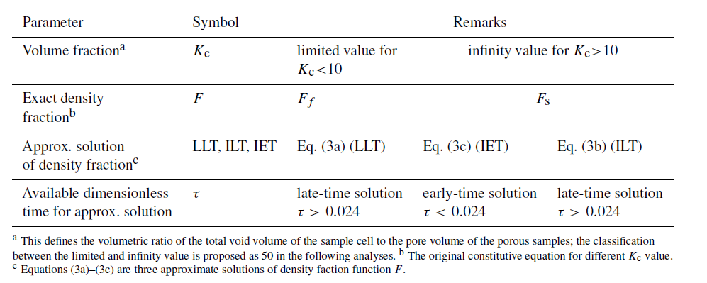 表1.不同近似解的无量纲时间及储容系数划分标准