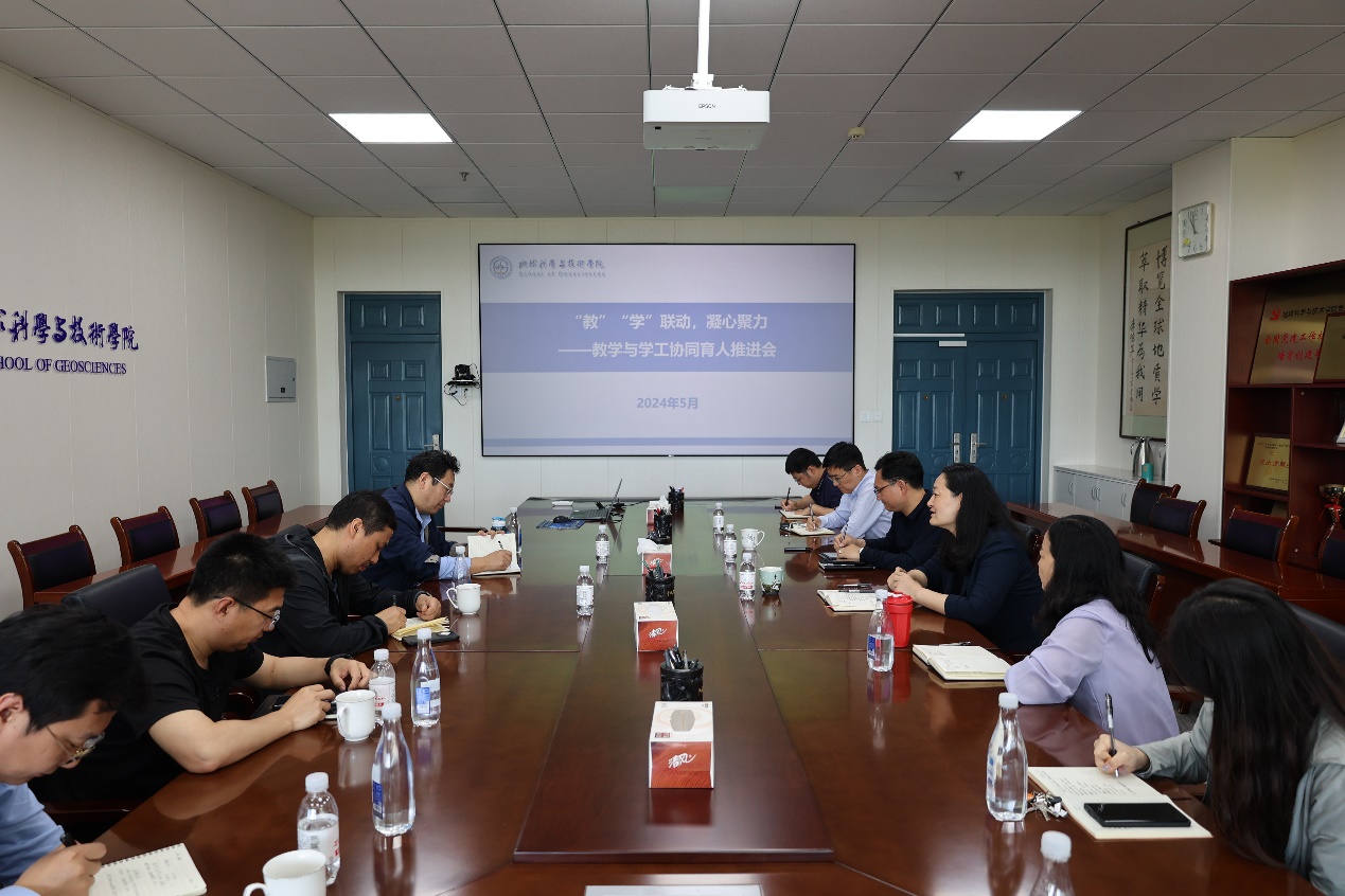 5月29日,学院学生工作队伍邀请各系副主任在工科楼C座251会议室召开“‘教’‘学’联动,凝心聚力”学工队伍与各系协同育人推进会。学院党委副书记郑珊珊,地质系党支部副书记葸克来、资源系党支部副书记王广伟、地球物理系党支部副书记尹兵祥、测井系党支部副书记魏周拓及全体专职辅导员参与推进会。