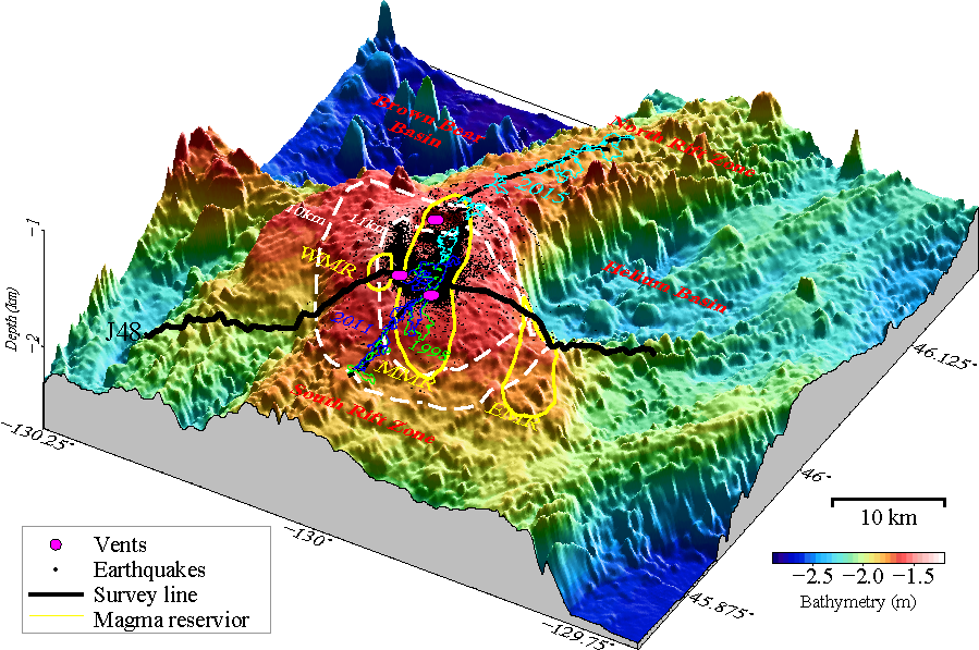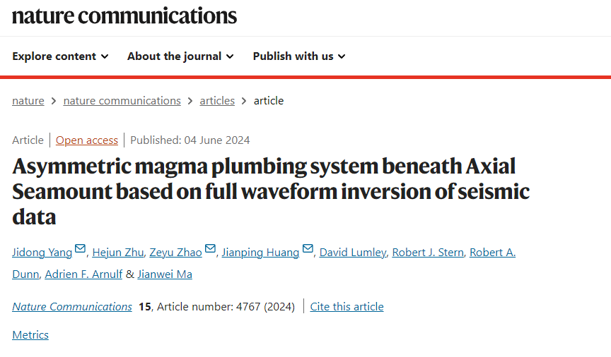 近日,地球科学与技术学院李振春教授带领的“地震波传播与成像”课题组在Juan De Fuca洋中脊海下火山研究方面取得新进展,相关研究成果《基于全波形反演的海底火山非对称岩浆系统研究》(Asymmetric magma plumbing system beneath Axial Seamount based on full waveform inversion of seismic data)发表在Nature子刊《Nature Communications》上,是地球科学与技术学院首篇Nature子刊论文。论文第一作者为地球科学与技术学院杨继东,通讯作者为地球科学与技术学院黄建平教授,冰球突破豪华版官方网站深层油气全国重点实验室和地球科学与技术学院为第一署名单位。合作单位包括北京大学、德克萨斯大学达拉斯分校、德克萨斯大学奥斯汀分校、夏威夷大学等高校。该成果得到国家优秀青年基金(海外)、泰山学者特聘、山东省海洋科技基金青岛海洋科学与技术国家试点实验室联合资助。