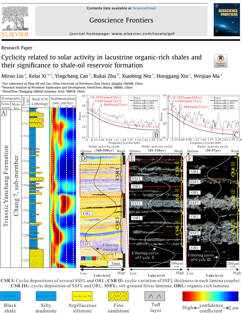 Mi-Ruo Lin, Ke-Lai Xi*, Ying-Chang Cao, Ru-Kai Zhu, Xiao-Bing Niu, Hong-Gang Xin, Wei-Jiao Ma, 2023. Cyclicity related to solar activity in lacustrine organic-rich shales and their significance to shale-oil reservoir formation. Geoscience Frontiers, https://doi.org/10.1016/j.gsf.2023.101586.