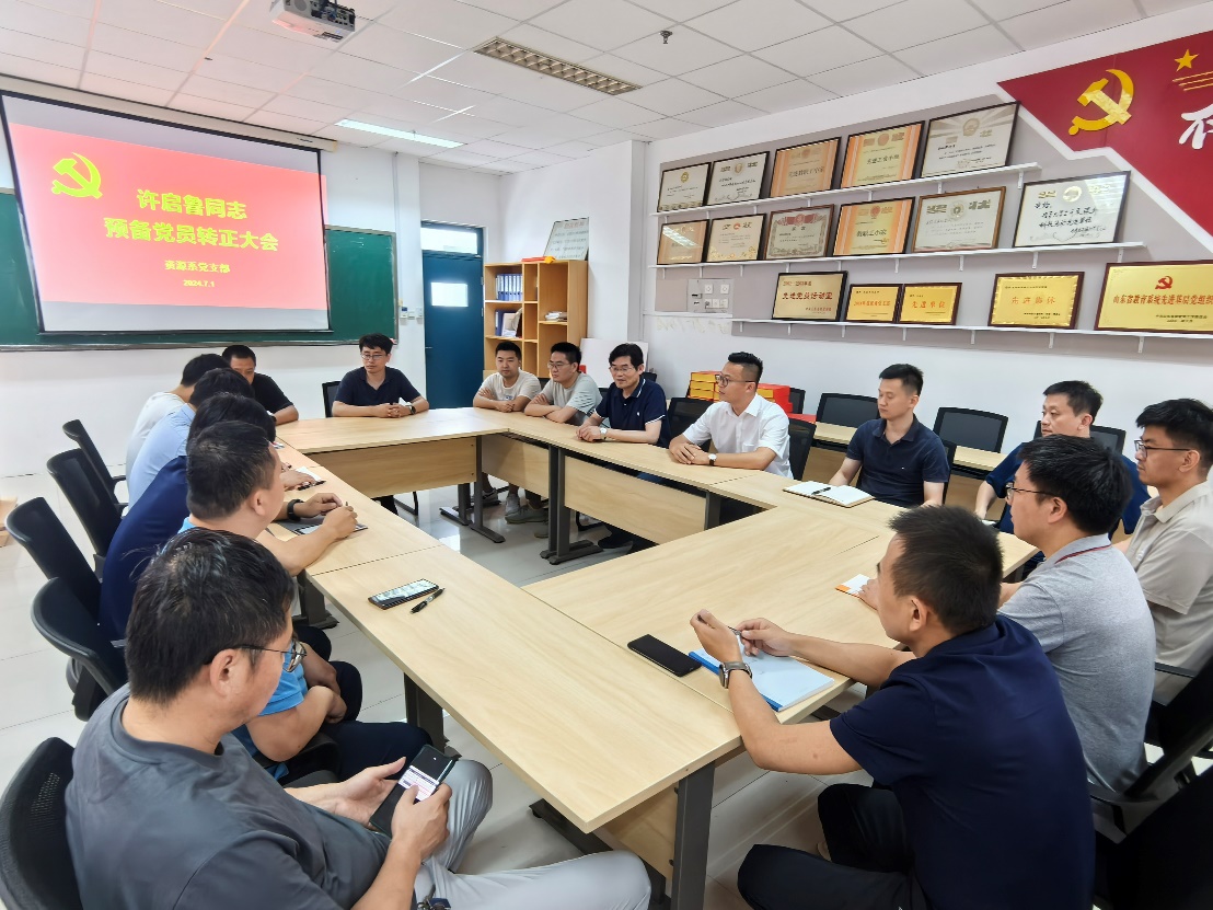 2024年7月1日,正值中国共产党成立103周年,冰球突破豪华版官方网站资源系召开党支部大会暨许启鲁同志预备党员转正大会,支部全体教师参会,支部副书记王广伟主持会议。