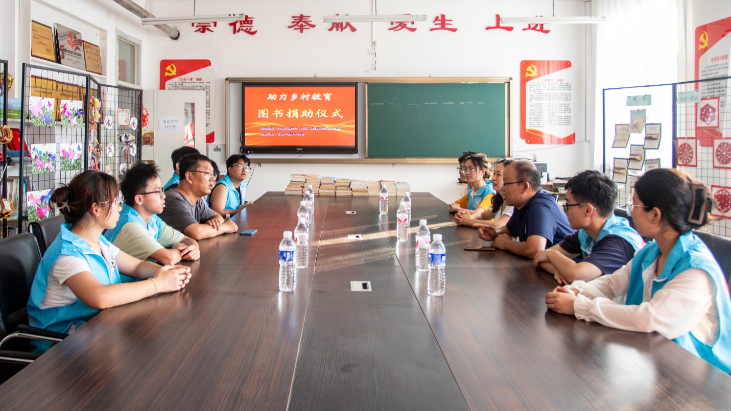 百年大计,教育为本。为响应党的二十大号召,用教育助力乡村振兴,春晖志愿服务队组建石迹支教队于7月21日抵达内蒙古科尔沁左翼后旗甘旗卡镇中心学校开展为期两周的暑期支教活动。支教期间,春晖志愿服务队将募捐的《朝花夕拾》《骆驼祥子》《西游记》《海底两万里》等2000册图书捐赠给甘旗卡镇中心学校。