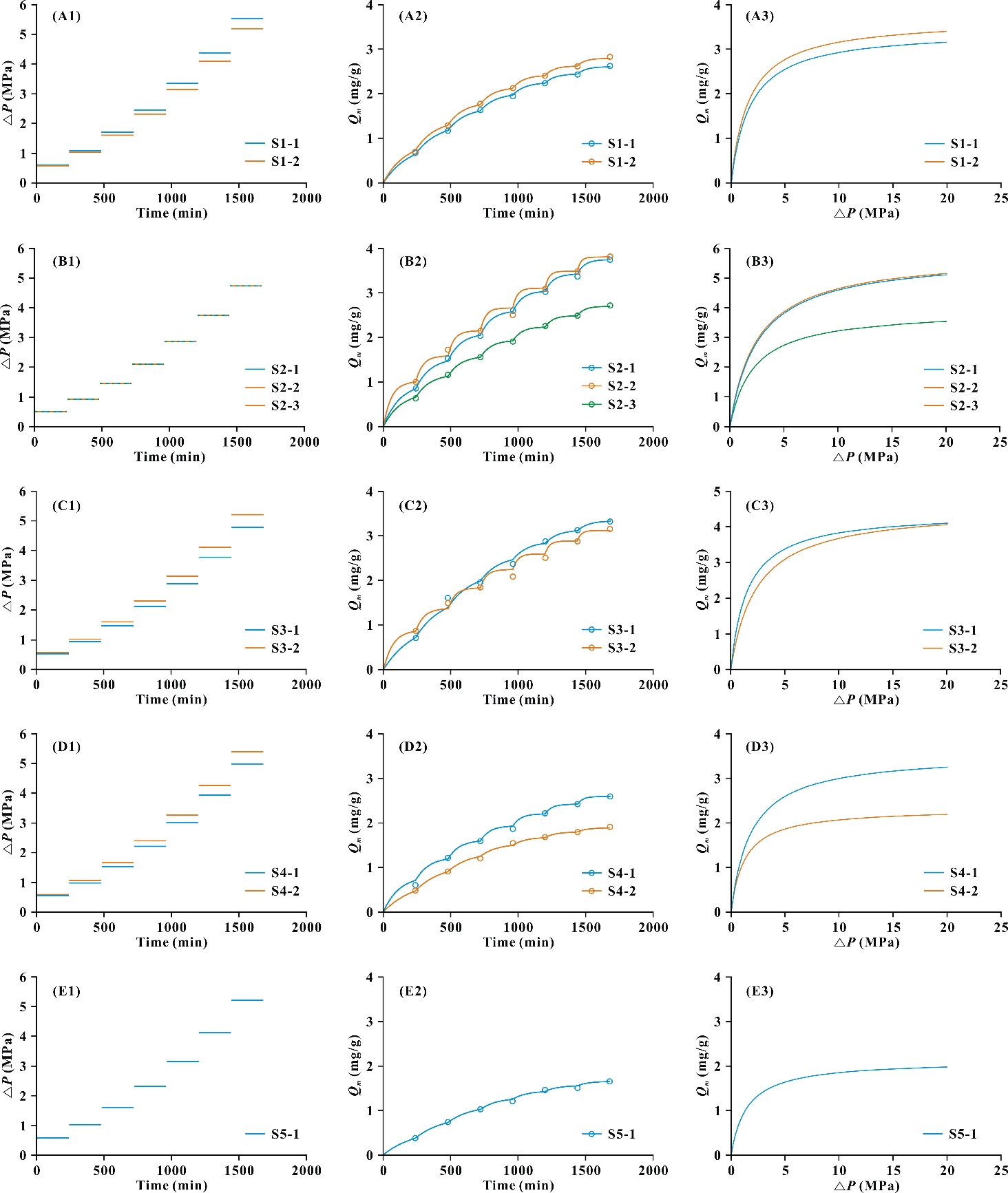 图2. 页岩孔隙水非平衡(A2、B2)与平衡(A3、B3)排出过程