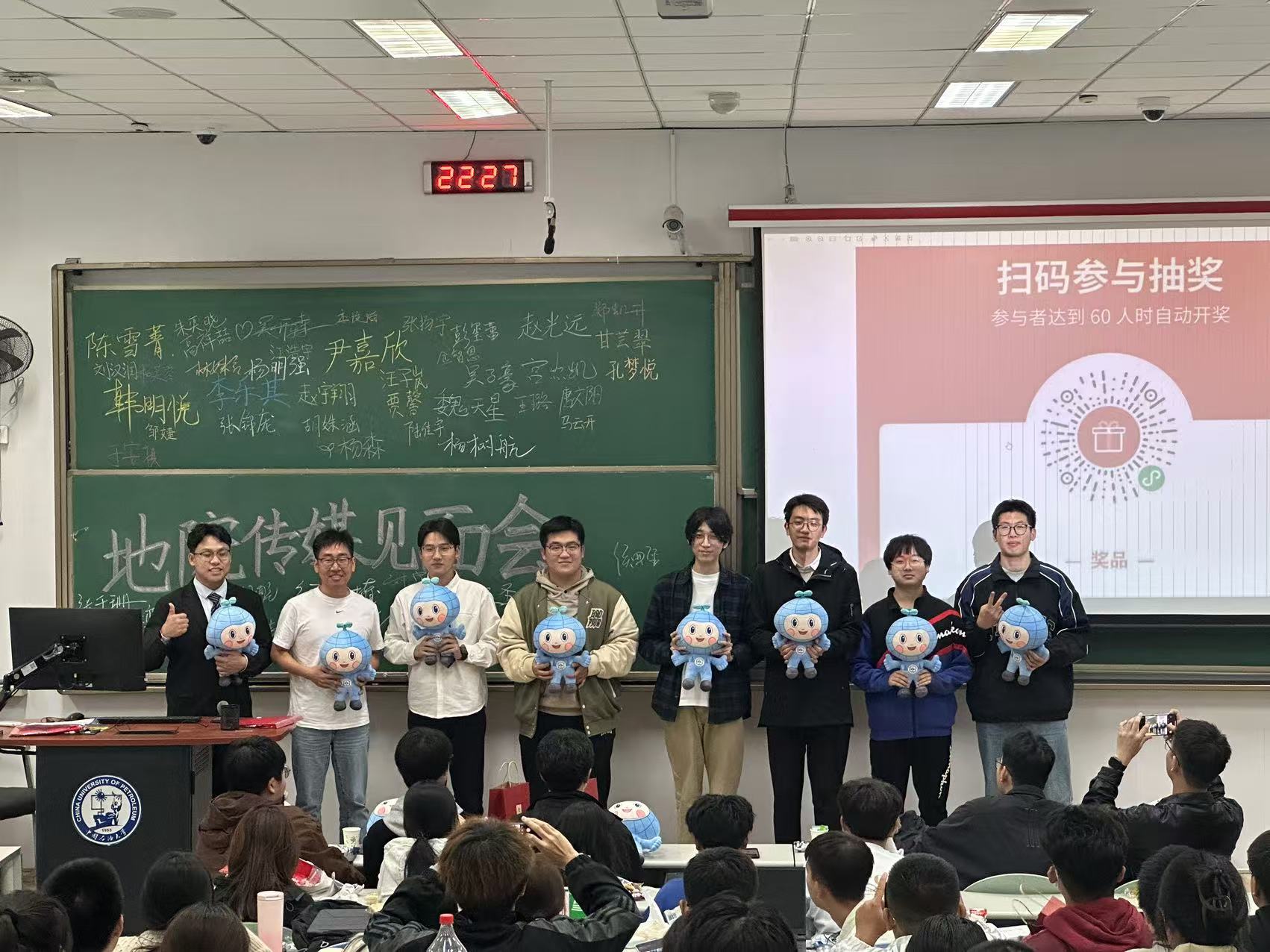 在线上问题抢答环节中,在场同学们通过扫描屏幕上方二维码参与抢答。问题围绕地院传媒工作室的发展成果及运营模式设计展开,旨在加强新生们的对工作室的了解。有奖问答环节的顺利开展不仅增加见面会的互动性,还让新生们在轻松愉快的氛围中学习到了知识,现场的同学融乐于学,纷纷举手积极回答问题。
