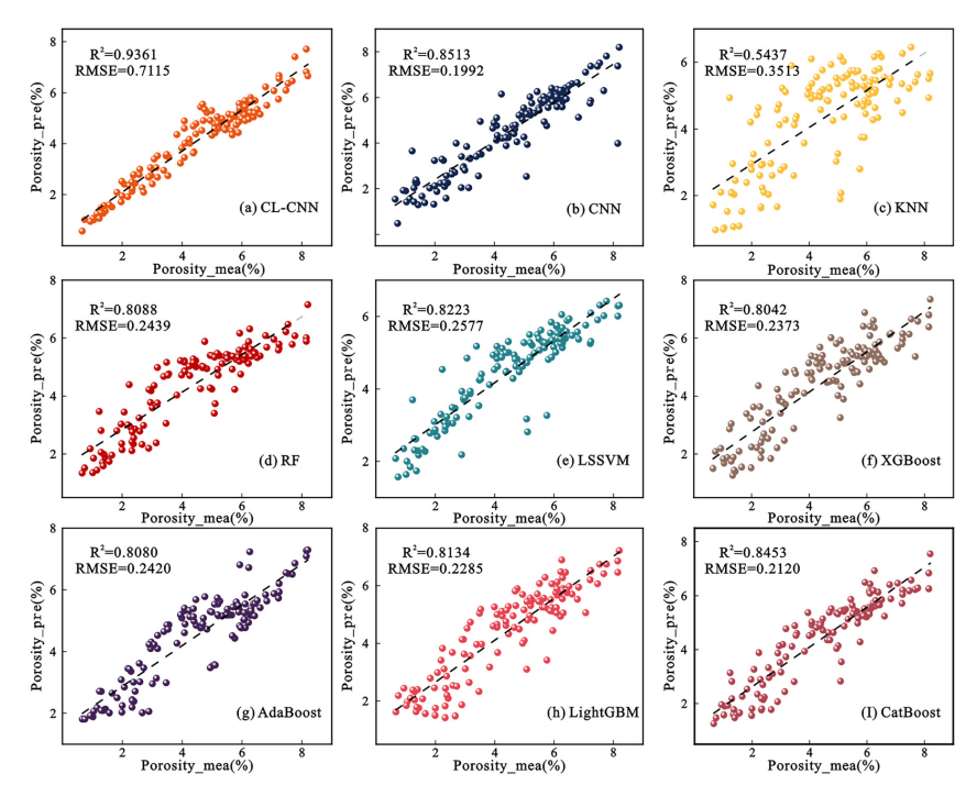 该框架在中国东部的苏北盆地进行了实际验证,使用了2576个未标注数据和130个标注数据,以增强模型的泛化能力。结果表明,CL-CNN框架在预测准确性上优于传统的基于卷积神经网络的监督学习及其他机器学习模型。此外,该框架显示了在不同井深进行广泛孔隙率评估的潜力。由于其高效性和易用性,所提出的框架在储层评估、工程开发等相关领域具有广泛的应用前景。本研究的创新之处在于其独特的方法论和程序步骤,为页岩储层孔隙率的准确预测做出了重要贡献,显著丰富了该领域的现有知识体系。