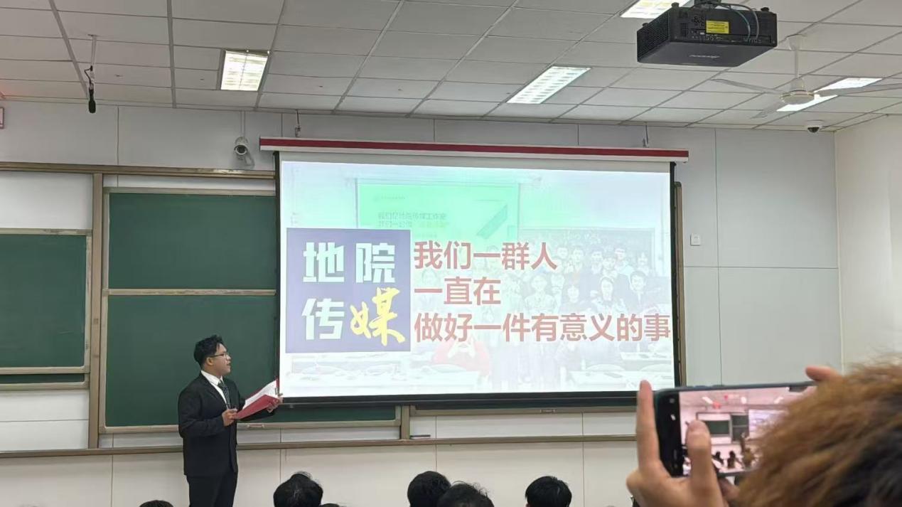 25个中国记者节前夕,学校发布《关于表彰20232024年度新闻宣传先进集体和先进个人的决定》,地院传媒工作室以全校第二、院部第一的成绩获评学校“新闻宣传十佳学生组织”。