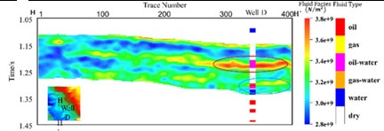 针对当前地震反演方法缺乏地质背景信息约束的难题,综合分析了不同类型相信息在地震反演中的作用,并将其引入到叠前地震反演中。地震相、岩相、流体相等相分类结果是地质先验信息的一种,不同类型的相边界与沉积体边界、地层边界、流体边界存在相关性。利用可以表征地下介质地质信息的多类型相分类结果,构建了考虑多类型相信息的概率化先验模型,发展了多类型相约束的叠前地震概率化反演方法,为提高地震反演结果的可靠性提供了方法支撑。模型测试与现场数据案例证明了多类型相驱动的叠前地震流体预测方法的可靠性和稳定性(见图1)。