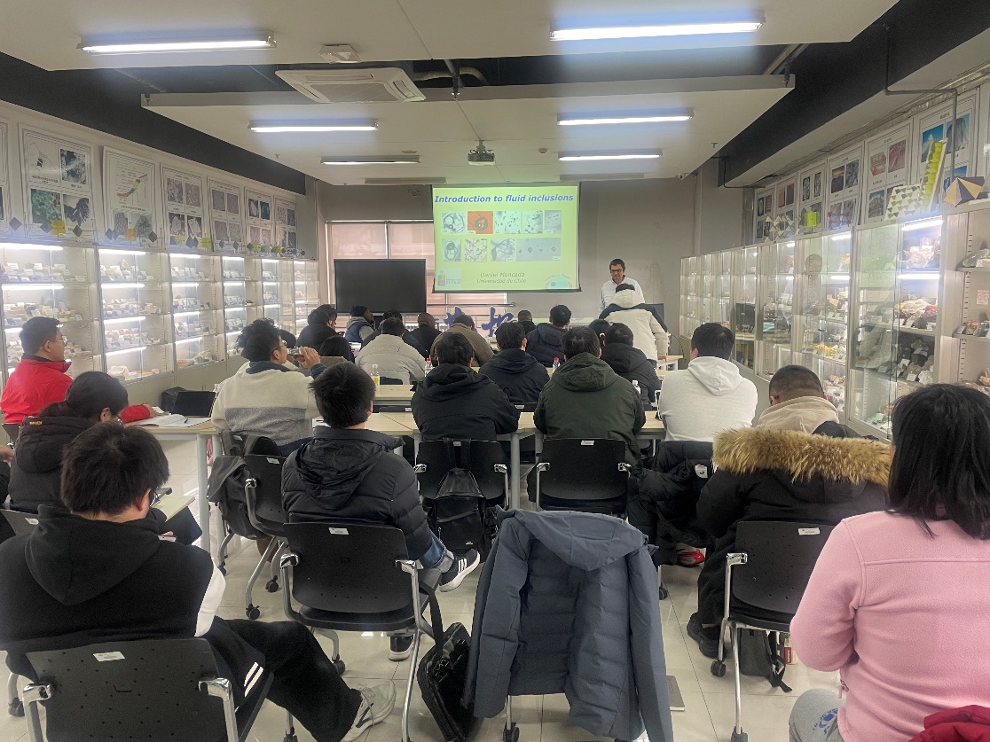 2024年12月19日至2024年12月22日,学院GeoFriday第93期讲座于工科楼C地质博物馆成功举行。王淼特任副教授邀请来自智利大学的Daniel Moncada博士为冰球官网研究生讲授了《Introduction to fluid inclusions in ore-forming and hydrocarbon systems》的短期课程。学院师生五十余人参加本次交流。