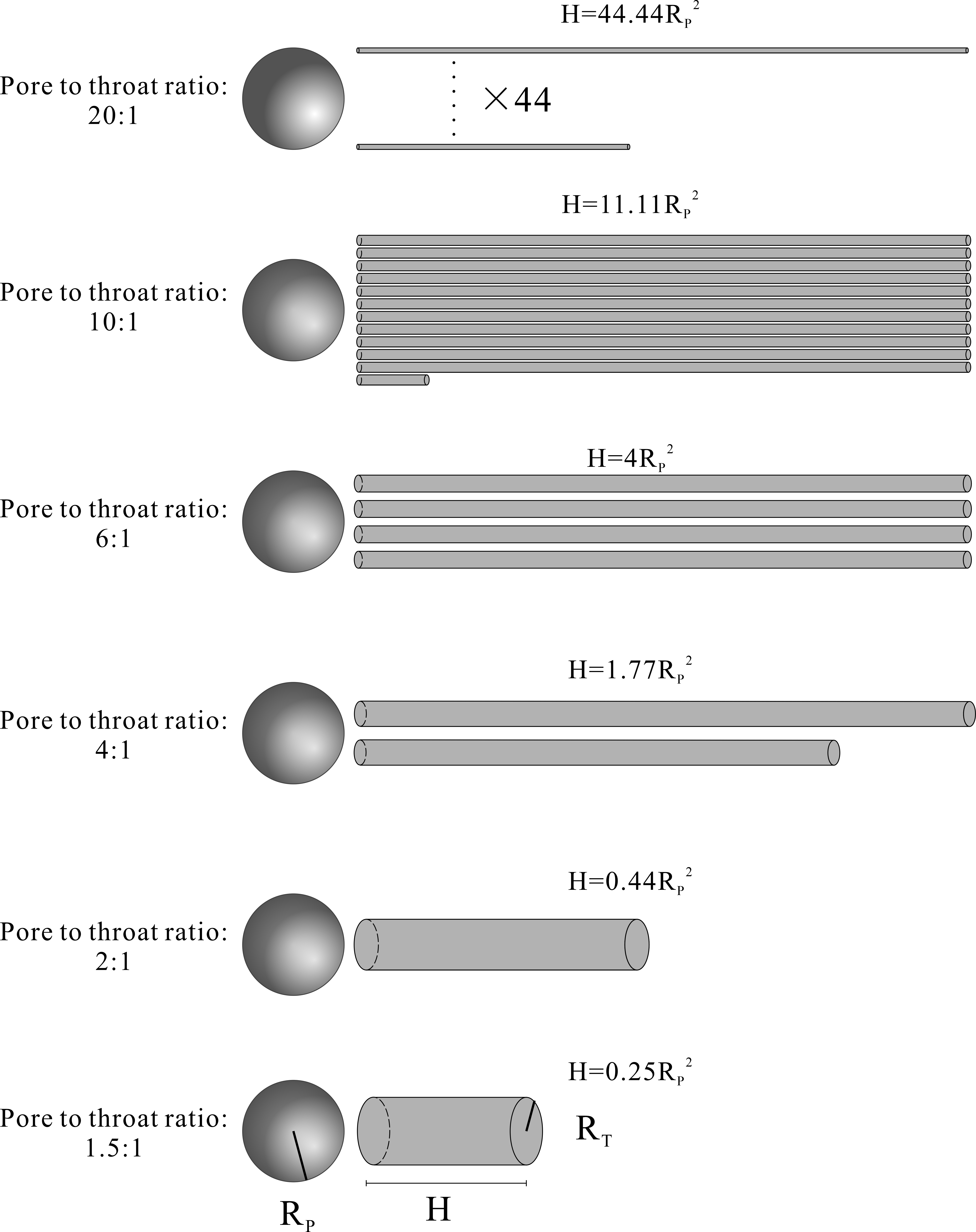 同时本研究还对岩石的孔隙结构表征进行优化,结合(超)小角X射线散射和高压压汞两个实验方法对页岩的孔径-孔喉比进行刻画。发现在Bossier页岩中孔径-孔喉比差别较大,最小为1.65,最大为19.4。同样体积的流体流过孔喉-孔径比20的样品要比1.5的样品流动177倍的距离。