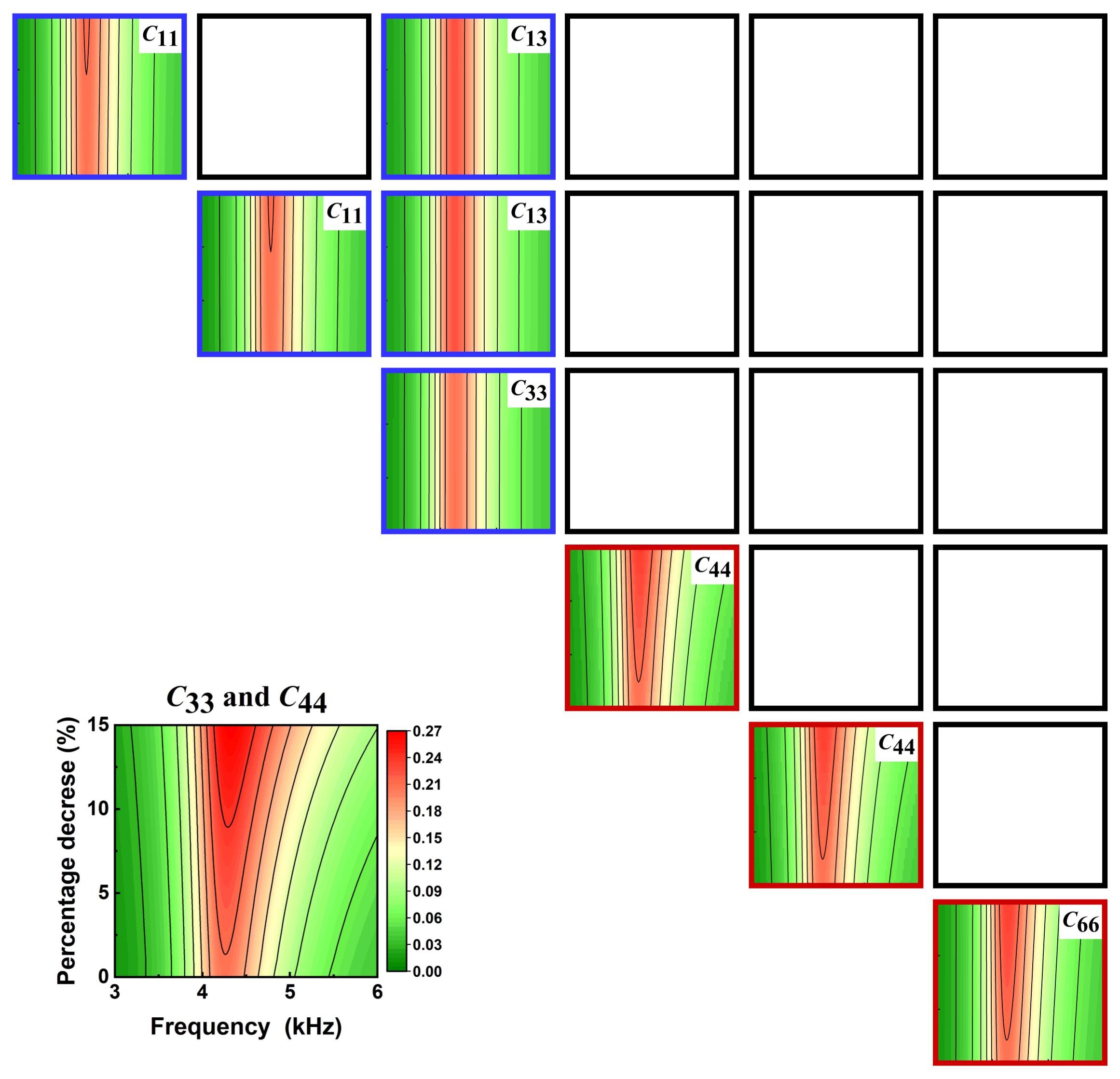 图1.辐射图谱描述了SH波能流对各向异性参数和激发频率的敏感性