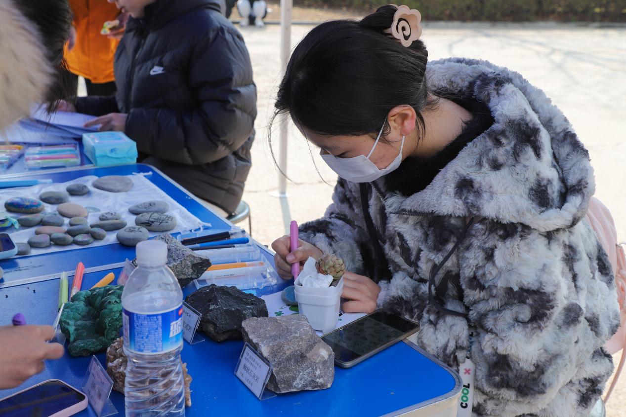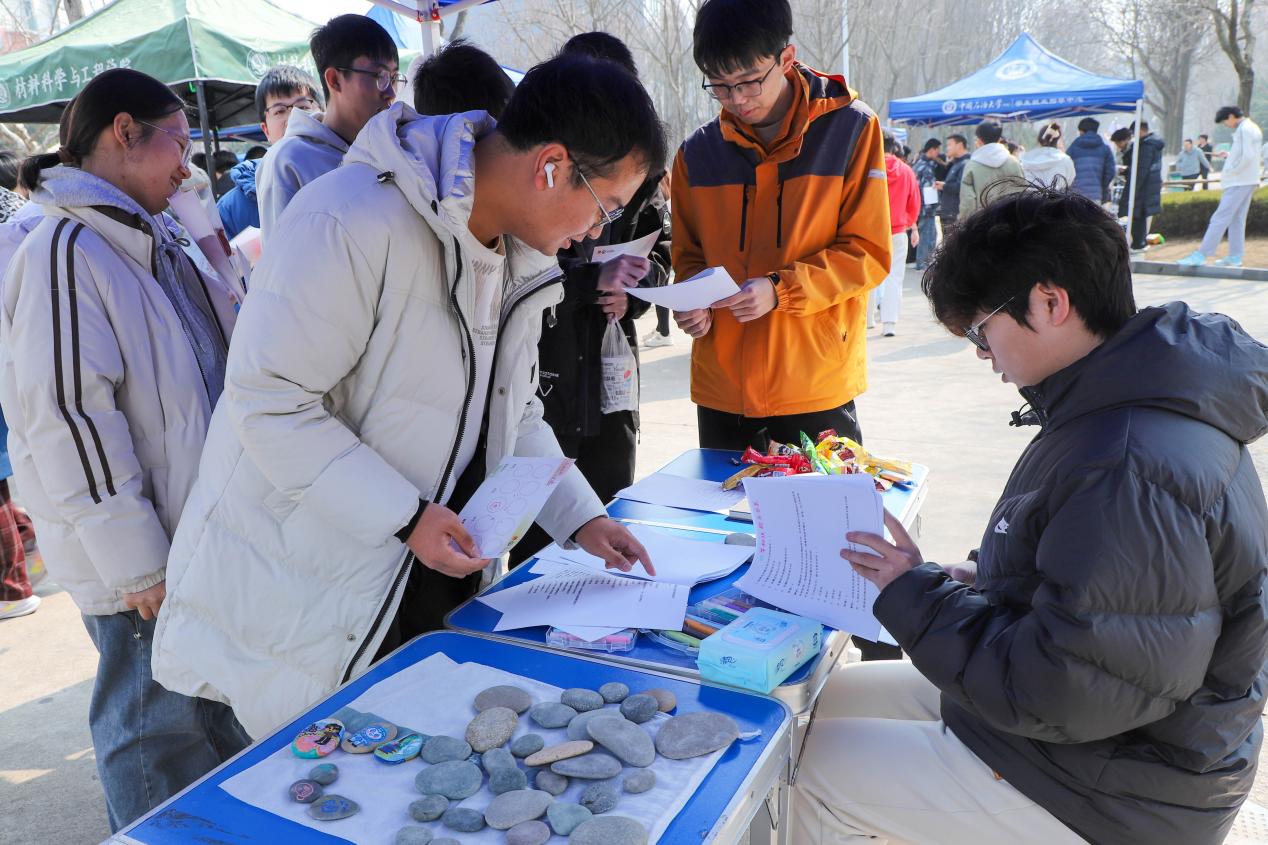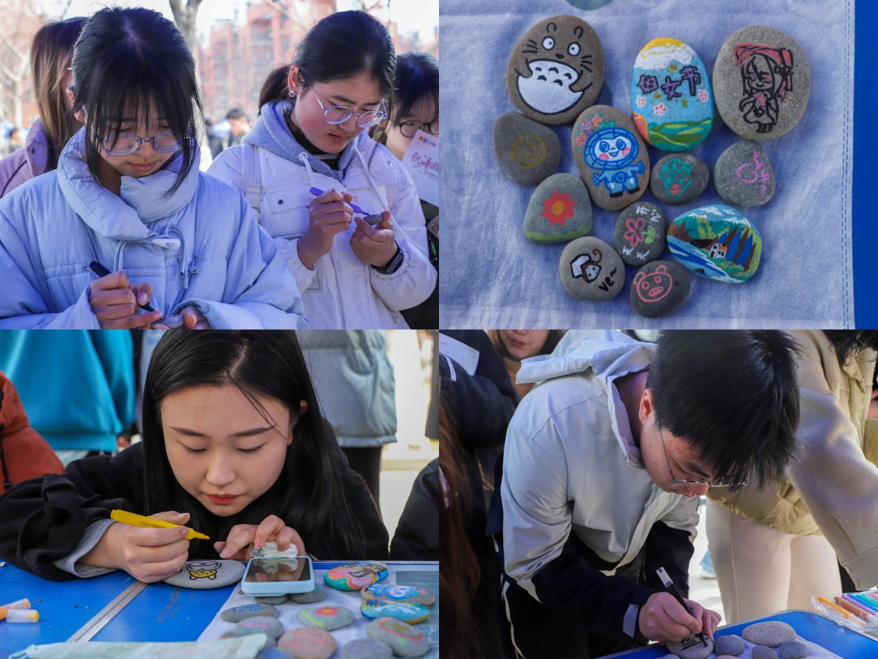 活动现场,冰球突破豪华版官方网站精心策划的“岩石彩绘工坊”成为焦点,它以独特形式唤醒参与者们的艺术潜能,令参与者纷纷化身“岩石艺术家”。以天然石块为画布,选用多彩颜料勾勒地院吉祥物、动画人物或山川图案,平凡的岩石瞬间焕发新生。不少同学选择与同伴协作创作,现场欢声笑语不断。许多同学自信地向镜头展示并选择留下自己的绘画作品,这些精美的艺术作品吸引了更多参与者的兴趣,岩石彩绘工坊摊位前络绎不绝。