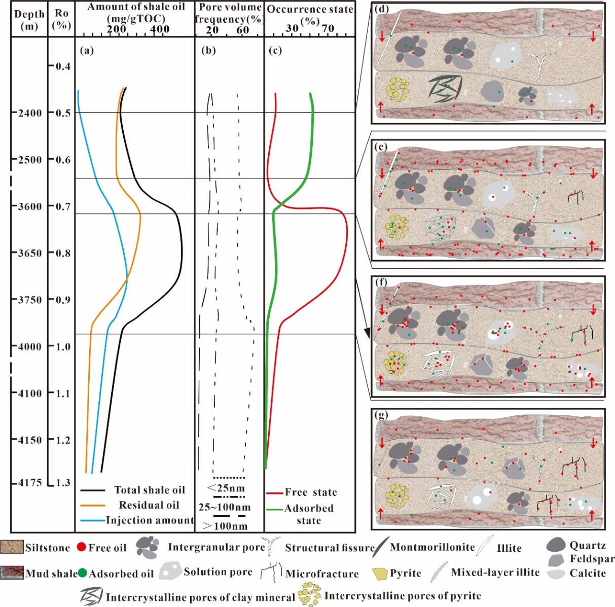 图2 粉砂岩夹层储集空间演化与页岩油赋存状态