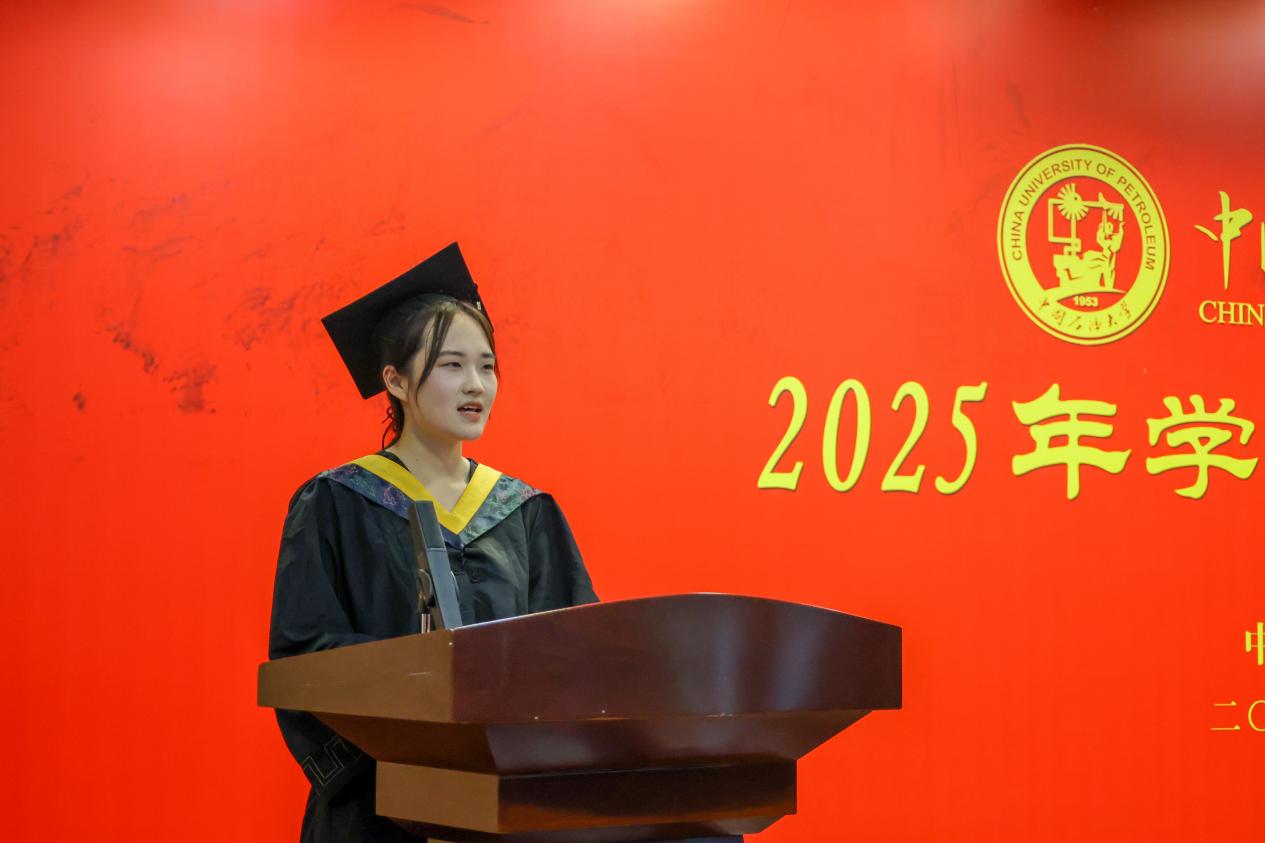 本科生毕业生代表、勘查技术与工程(物探)2101班谷佳莹分享了自己与石大和冰球突破豪华版官方网站相识、相知、相惜的美好记忆和成长感悟,她表示,学院“脚踏实地,胸怀全球”的院训,让同学们在别人满足于“合格”时而追求尽善尽美的突破。在未来,无论未来是奔赴勘探一线,还是投身科研创新,本届毕业生都将带着石大赋予的使命前行,在各自的岗位上发光发热,为国家发展贡献力量。