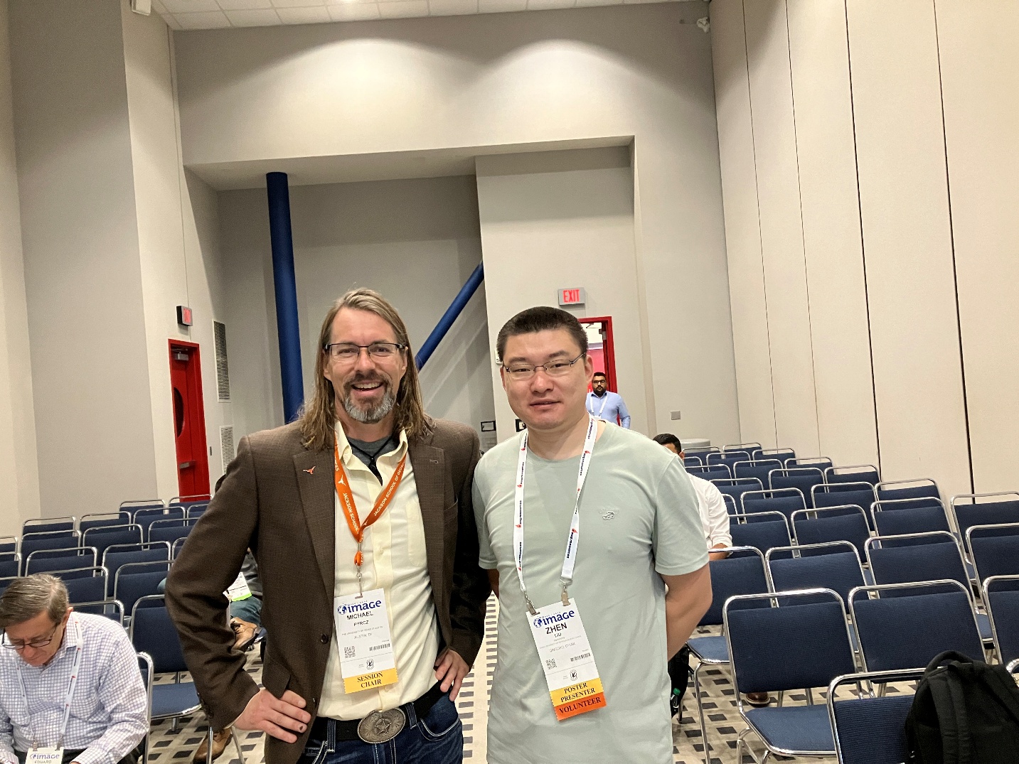 图1. 博士生刘震(右一)与德克萨斯大学奥斯汀分校Michael Pyrcz教授合影