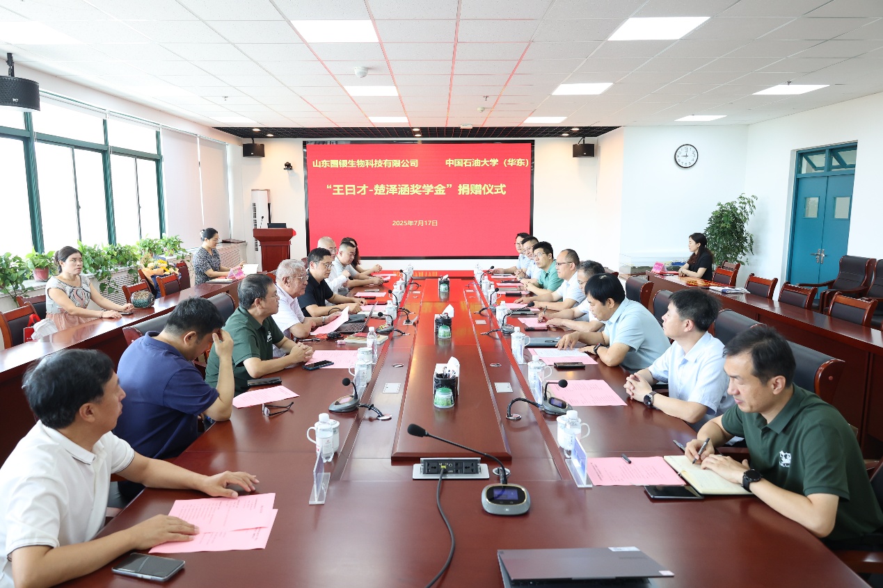 7月17日上午,山东国银生物科技有限公司与冰球突破豪华版官方网站“王曰才-楚泽涵奖学金”捐赠仪式在工科楼C271会议室隆重举行。