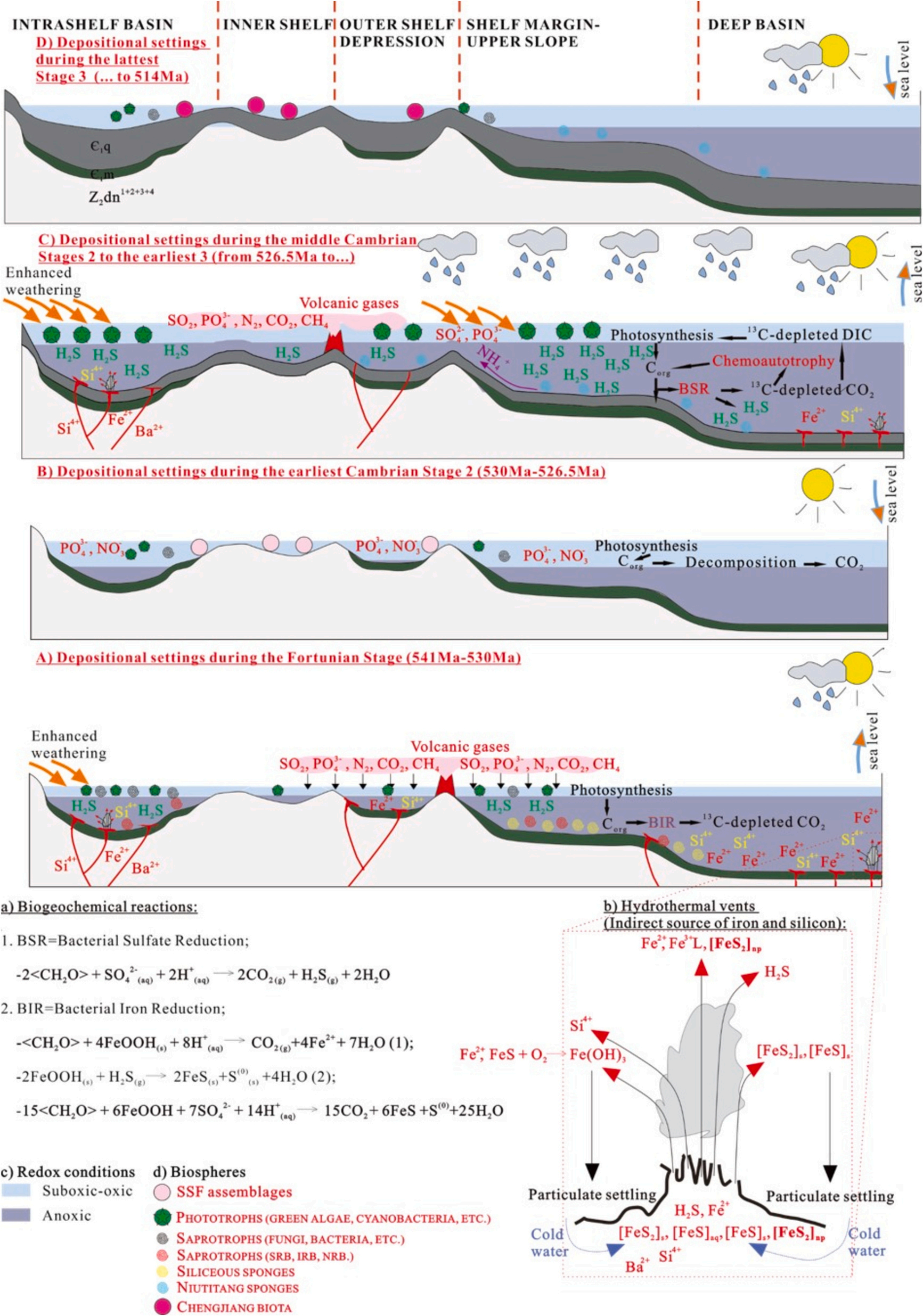 “寒武纪生命大爆发”是地球生命演化史上规模最大、影响最深远的生物创新事件之一,数十年来持续受到学界广泛关注。尽管研究已取得诸多进展,但与生物群演化相关的海洋氧化还原演化模式、火山-热液活动及海洋氧化还原条件与初级生产的内在联系,以及碳-硫循环及其同位素分馏的控制因素等关键科学问题仍有待厘清。