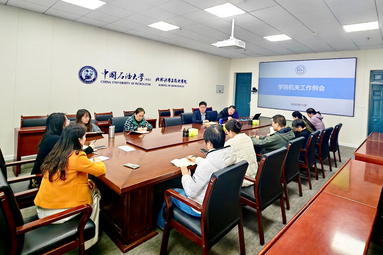 围绕年底收官,会议对近期重点工作作了相关安排。一是做好年度总结复盘,各办公室需全面梳理年度工作完成情况,既要用数据呈现成效,更要直面问题不足为来年工作打基础;二是合力做好学院“大事记”制作,把学院重大事件、重要成果、关键突破梳理好,做好宣传,鼓舞师生;三是筹备教职工年度总结表彰大会,使之成为系统总结全年工作的重要载体,也要选树表彰先进典型,通过榜样引领激发全体教职工干事创业的积极性,进一步营造“赓续勘探精神,打造地院‘家’文化”的良好氛围。